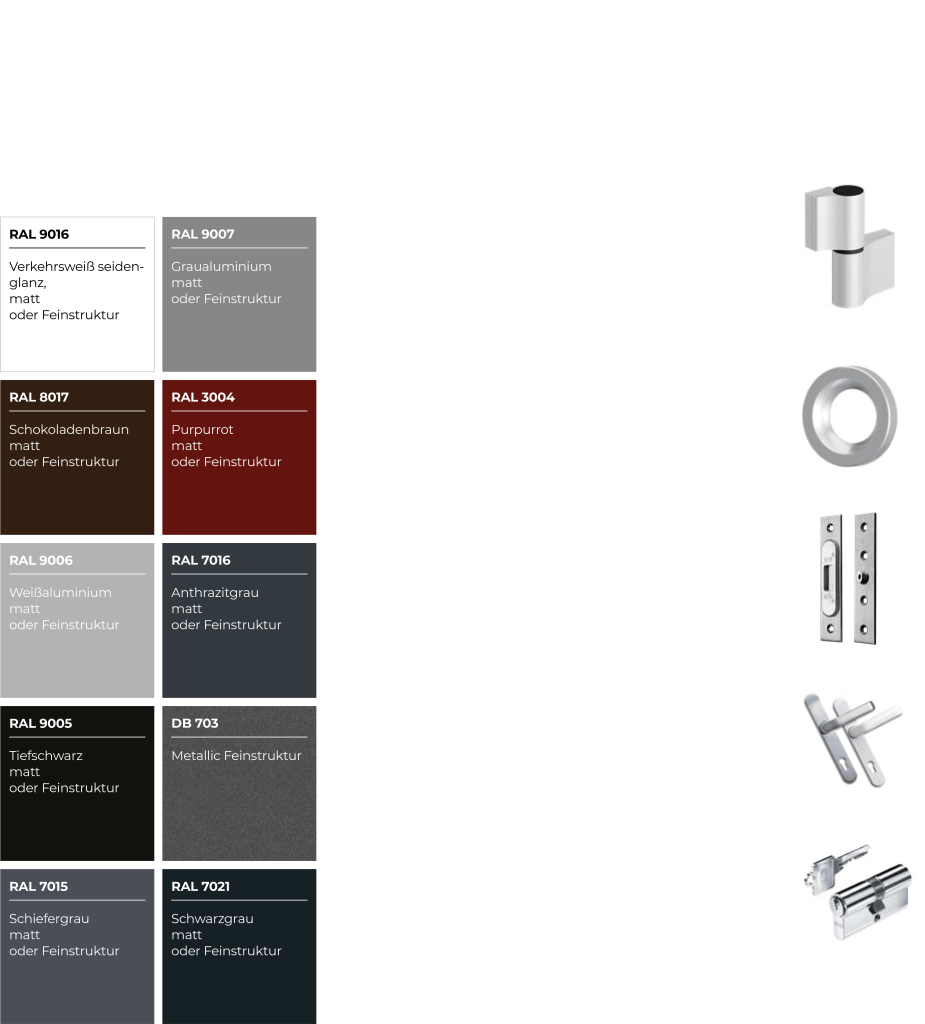• 10 Farboberflächen matt oder feinstruktur